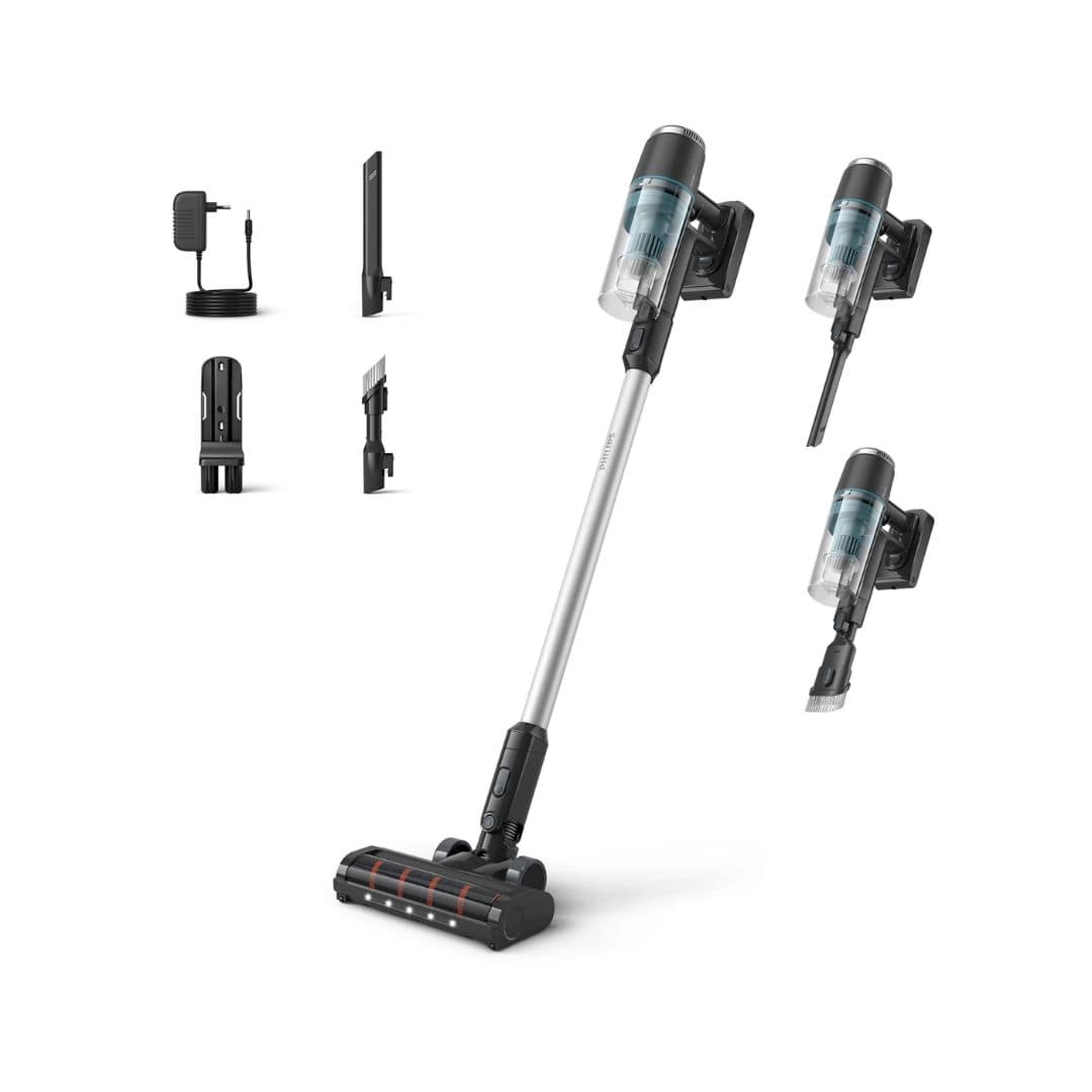 Unutar ormarića, u kutovima ili visoko – ništa nije izazov za Philipsovu seriju 3000. Pretvara se u ručni usisivač kako bi se lakše prenosio. Dugački nastavak za uske površine pomaže u dosezanju uskih prostora. Kombinacijski alat 2 u 1 lako se prebacuje između meke četke za uklanjanje prašine s osjetljivih površina i širokog alata za uske površine za čišćenje nezgodnih kutova.